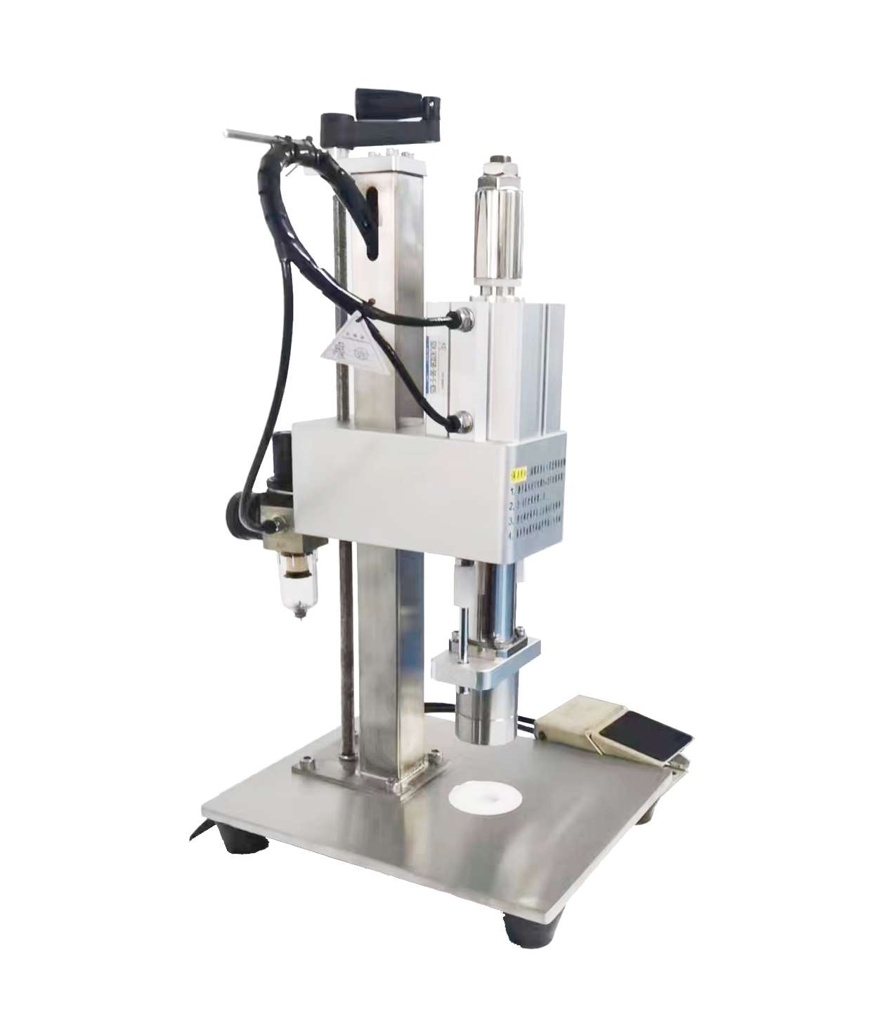 3、實(shí)現(xiàn)同款瓶直徑,封口高低可調(diào),無(wú)內(nèi)塞自動(dòng)報(bào)警。放瓶和出瓶為同一方向,方便于人員操作。